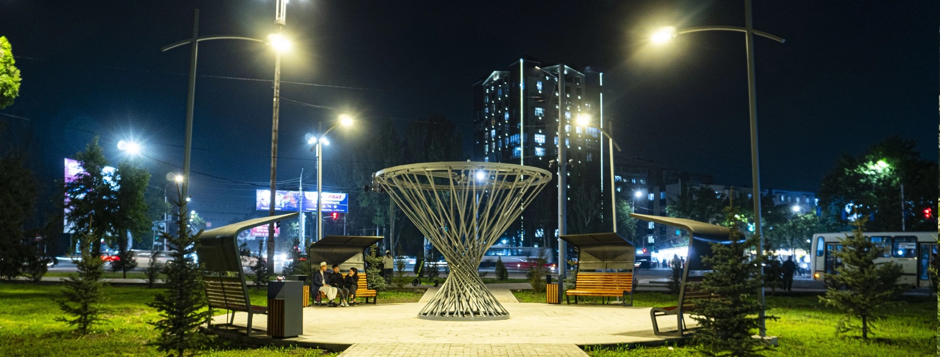 Компания «Технология» осуществила капитальный ремонт сквера на пересечении улиц Курманжан Датка и проспекта Чуй. Результатом работ стали: высадка зелёных насаждений, укладка тротуарных покрытий из гранита и брусчатки, установка фонтана, фонарей освещения, мусорных урн и скамеек.