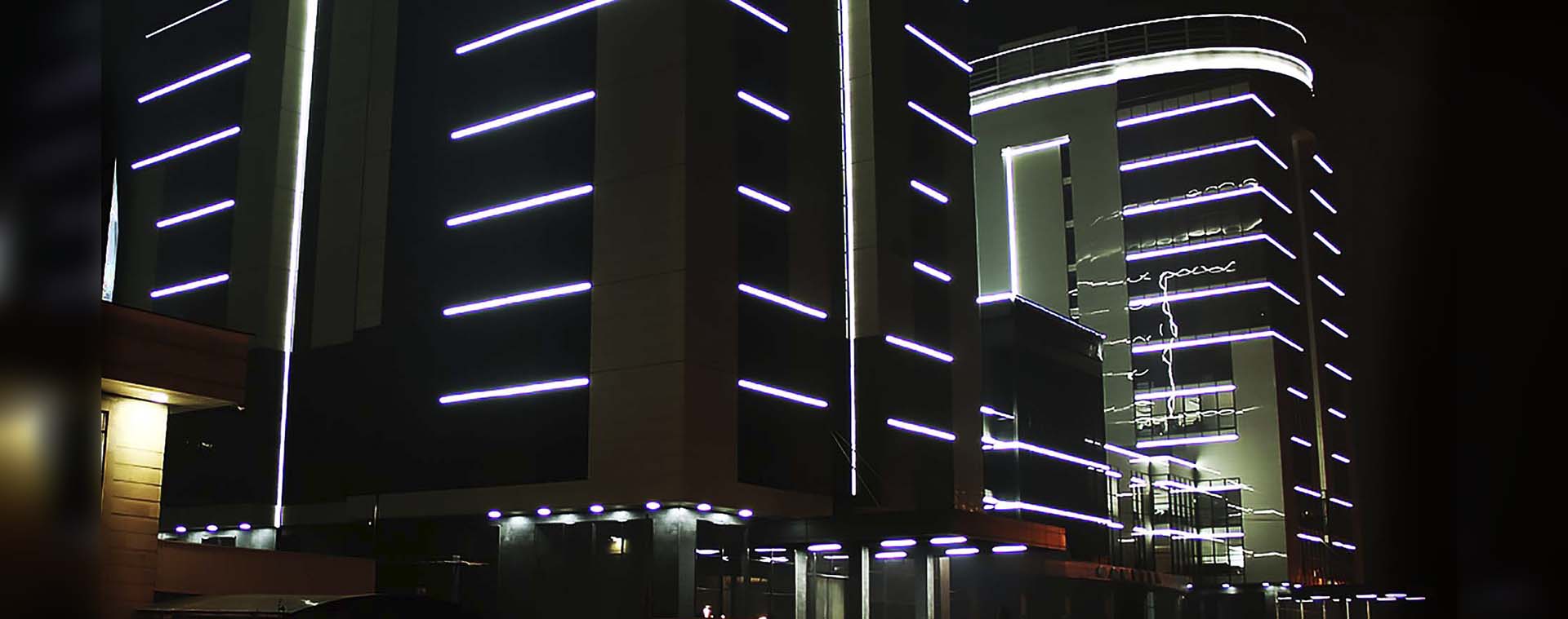 Специалистами нашей компании был разработан и реализован проект фасадной подсветки Бизнес Центра по ул. Токтогула (Бишкек). Дизайнеры и инженеры подобрали наилучший вариант эффектного оформления подсветки, подчеркивающий архитектуру и концепцию задуманного проекта.