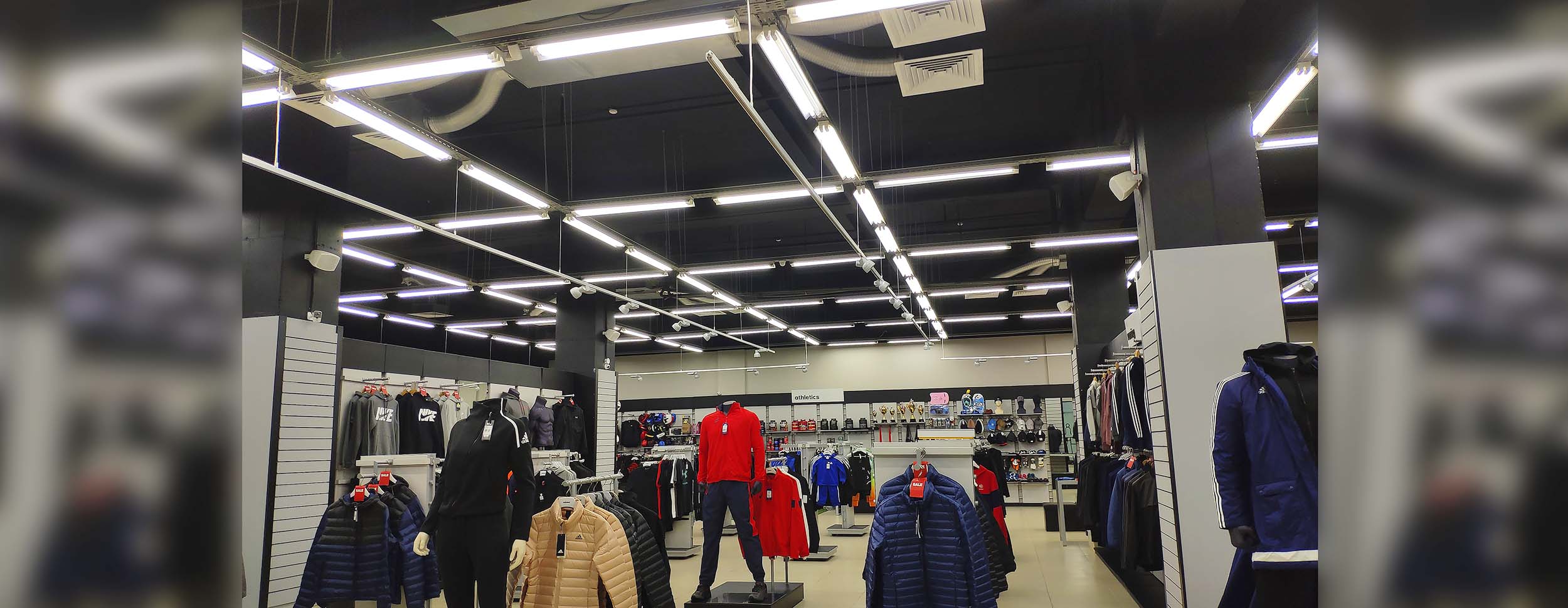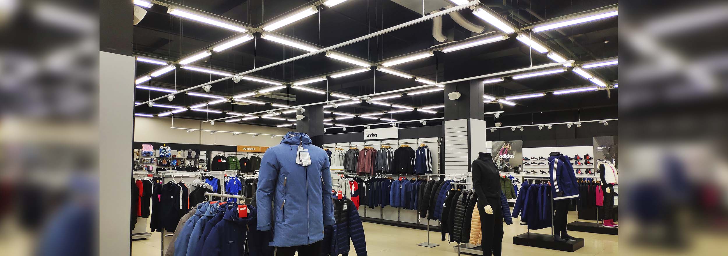 Система освещения спортивных магазинов является одним из ключевых факторов в коммерческом успехе заведения. Осветительные приборы выполняют не только свою непосредственную задачу освещения, но и также обеспечивают создание атмосферы, располагающей к совершению покупки. Кроме того, грамотно организованный свет позволяет сделать акцент на том или ином стеллаже, витрине или конкретном товаре.