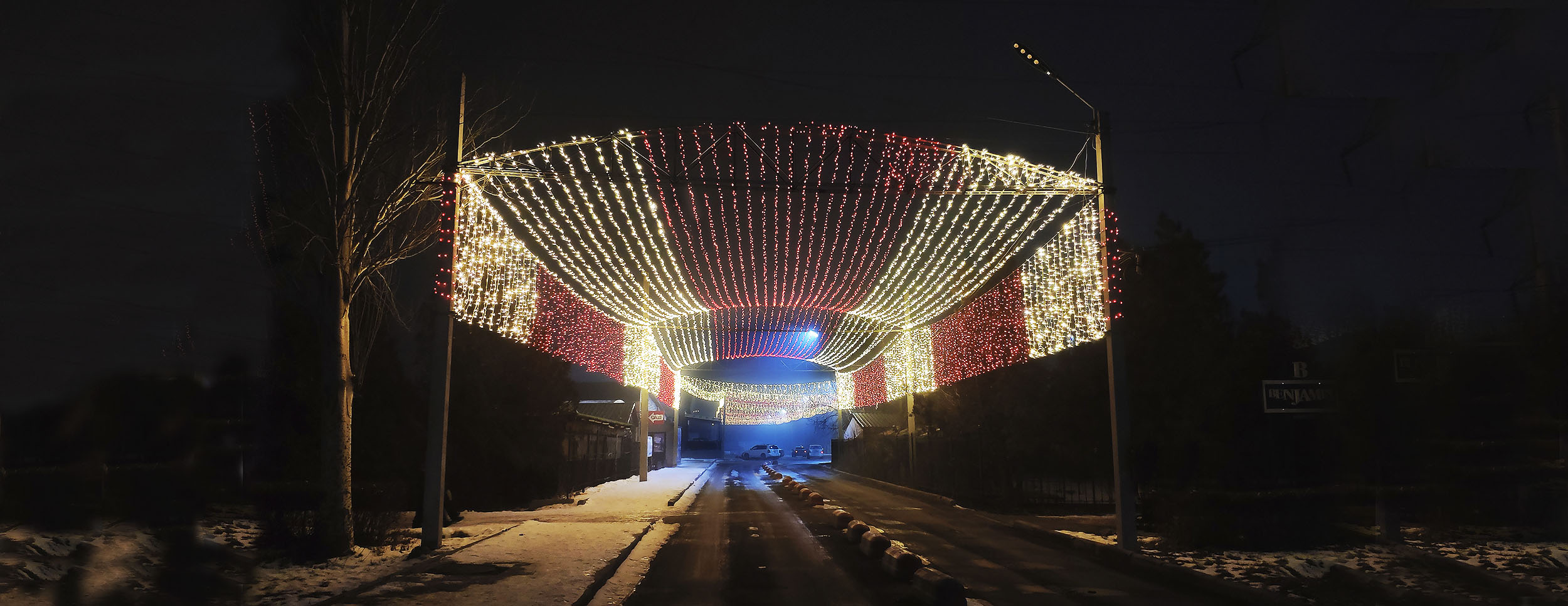 В преддверии нового 2019 года нашей компанией было осуществлено праздничное декоративное оформление Resto Street в г. Бишкек. Установлены опоры освещения и металлоконструкции собственного производства, а также украшения из светодиодных гирлянд. Декорации радуют жителей города, создавая чудесную праздничную атмосферу.