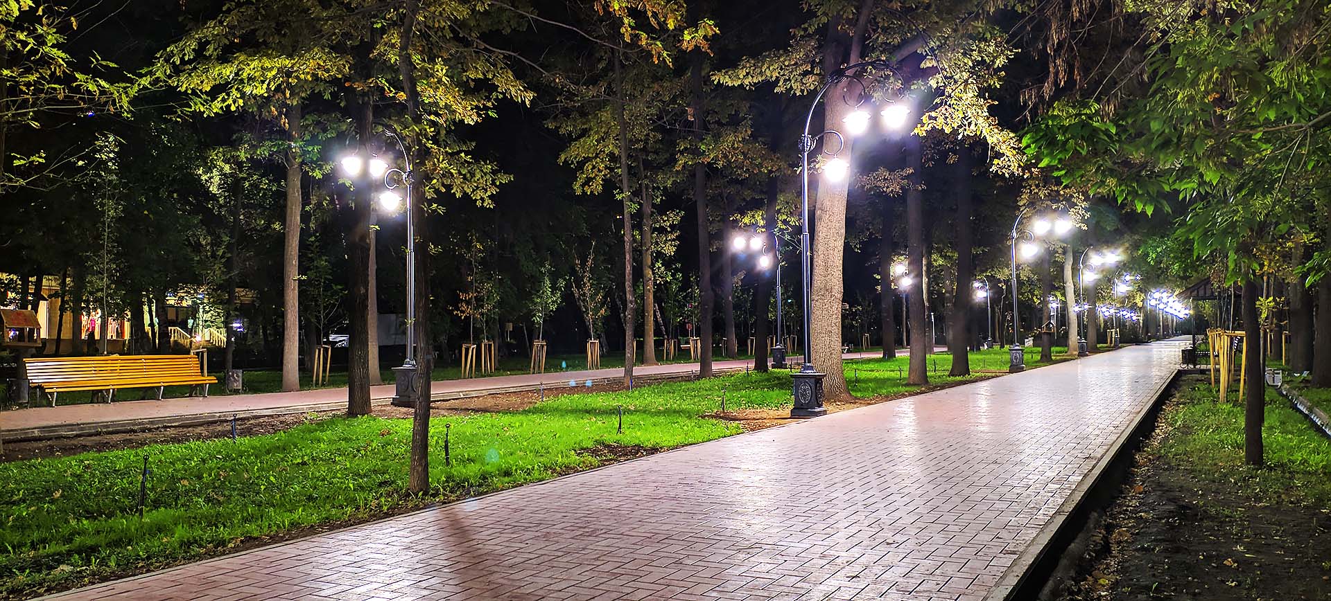 В 2019г. нашей компанией были проведены ремонтно-восстановительные работы сетей наружного освещения на бульваре Эркиндик в г. Бишкек. Установлены новые энергосберегающие светодиодные светильники с лучшей светоотдачей, чем прежние, а также установлены опоры освещения собственного производства в соответствии с историческим обликом бульвара.